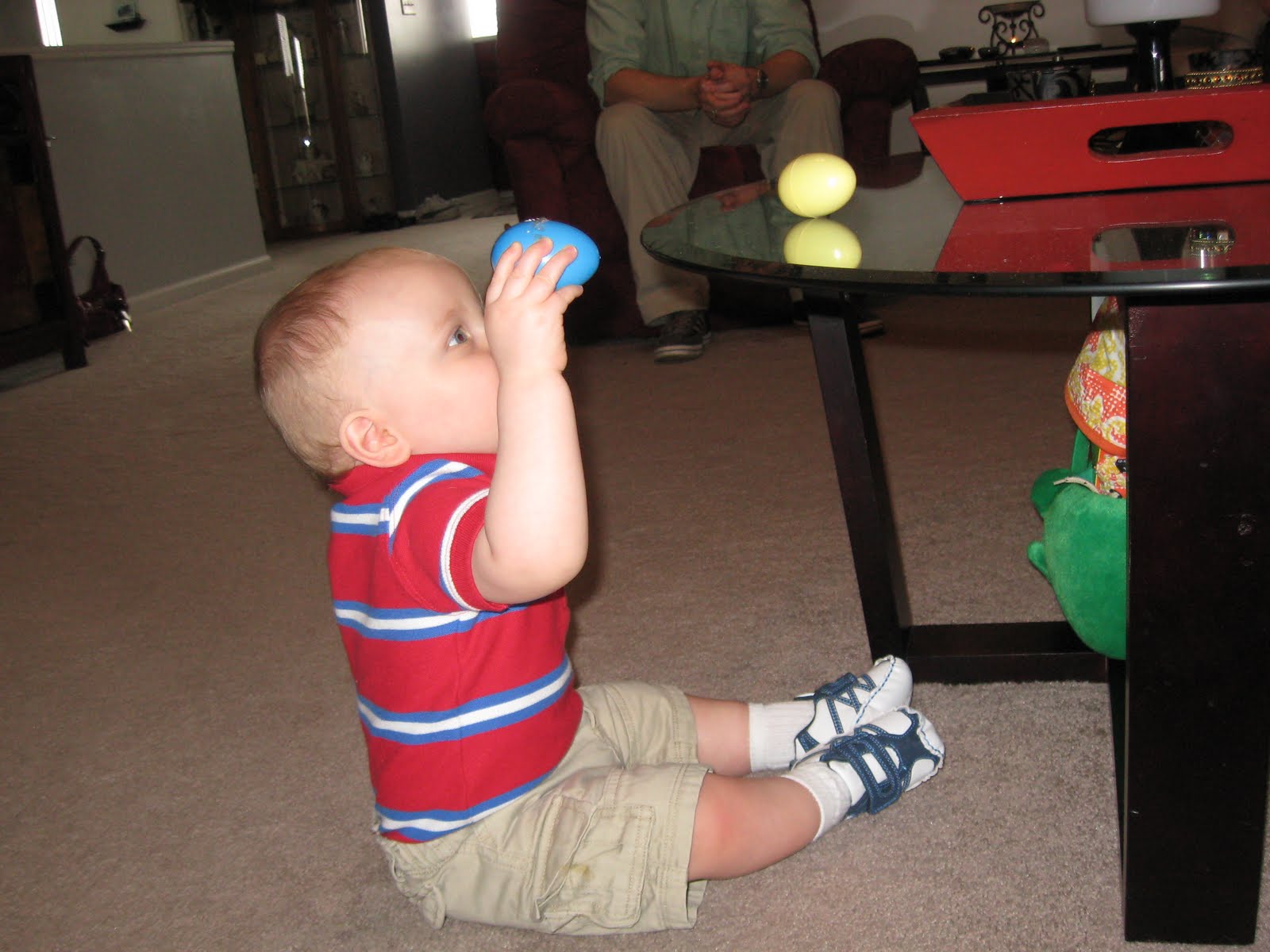 Eddie loved the eggs his granny hid...they each had a couple quarters in them and he just shook, shook, shook them!